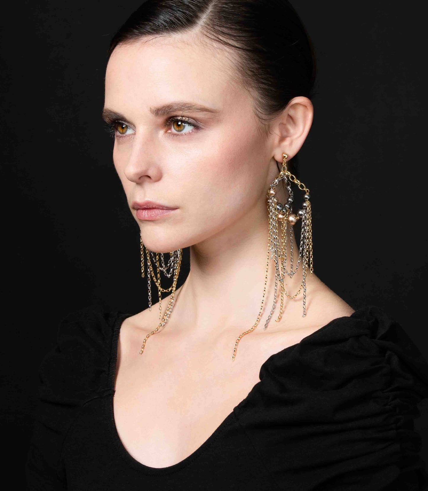 Discover the ultimate expression of creation with our avant-garde jewellery that combines earrings and necklace in a single piece. Imagined by our workshop, these jewels embody bold, extravagant creative freedom. Dare the unexpected with designs that defy convention and redefine the boundaries of style. Each creation is a work of art, blending distinct elements for a resolutely innovative look. These unique and innovative pieces don't just adorn, they tell a story of boundless creativity.