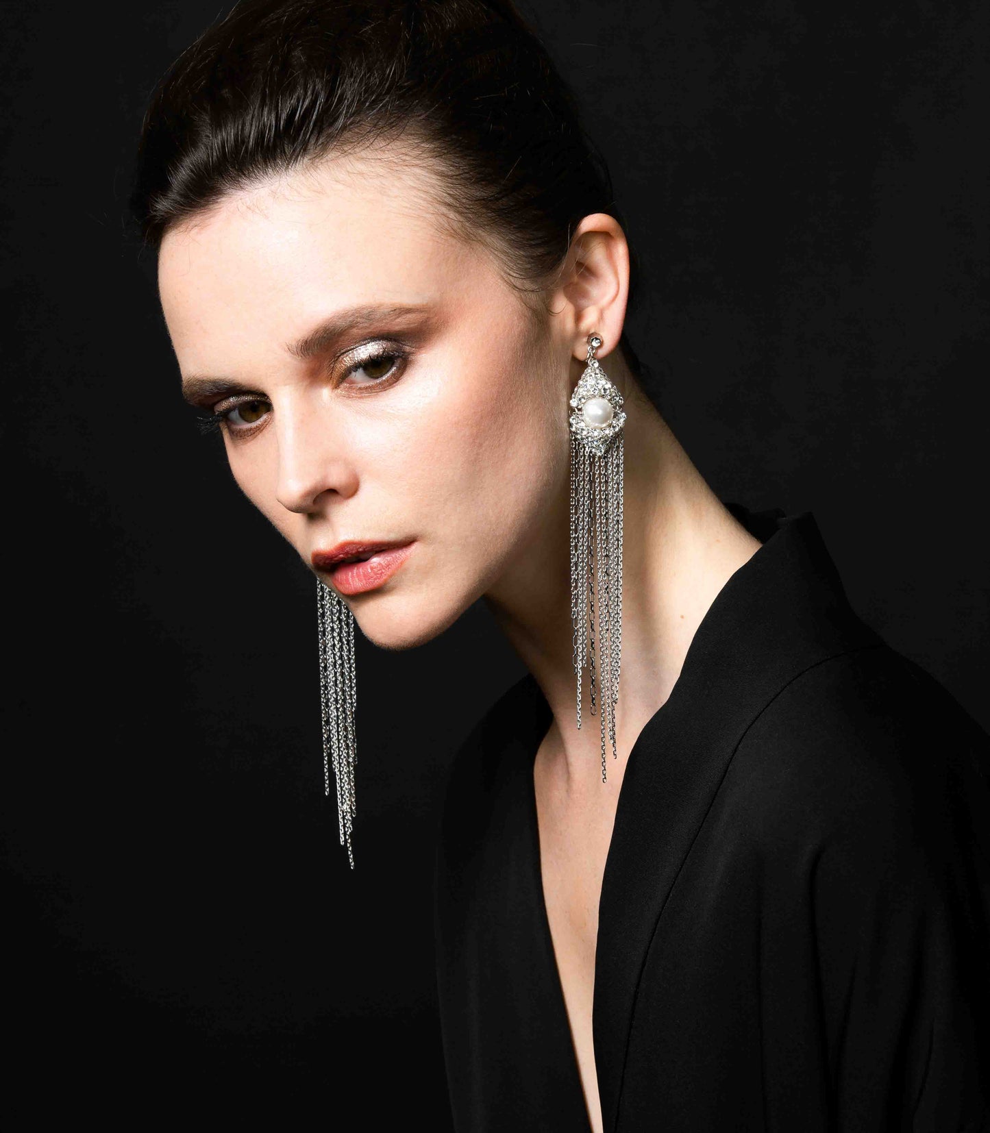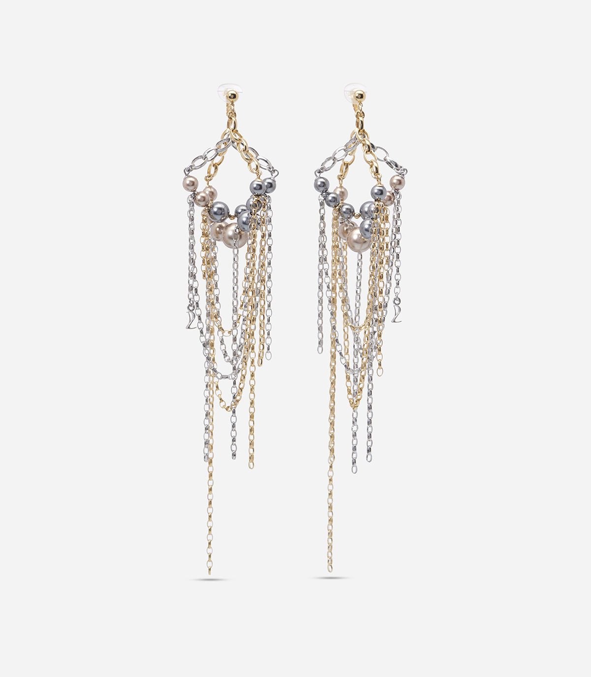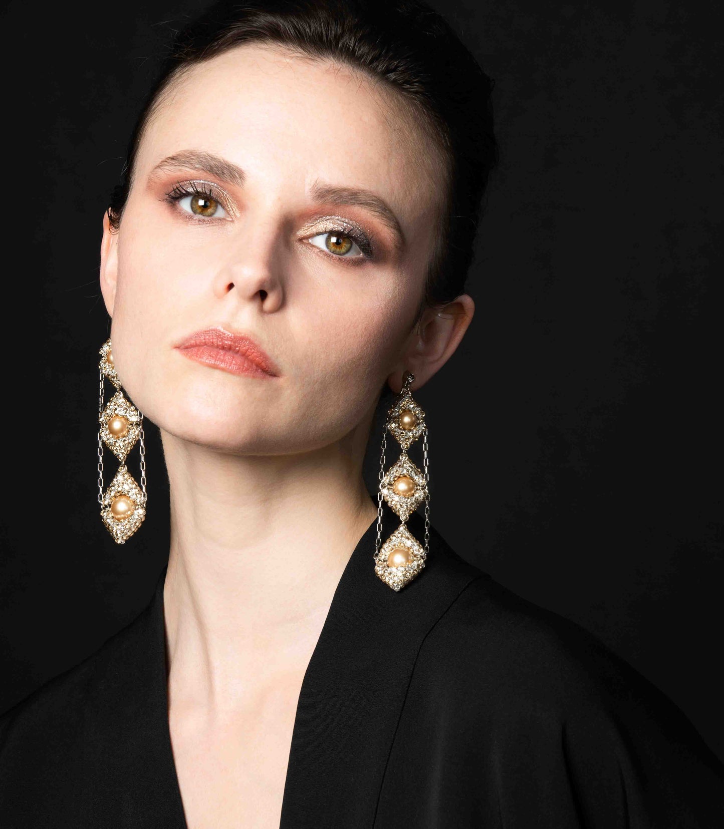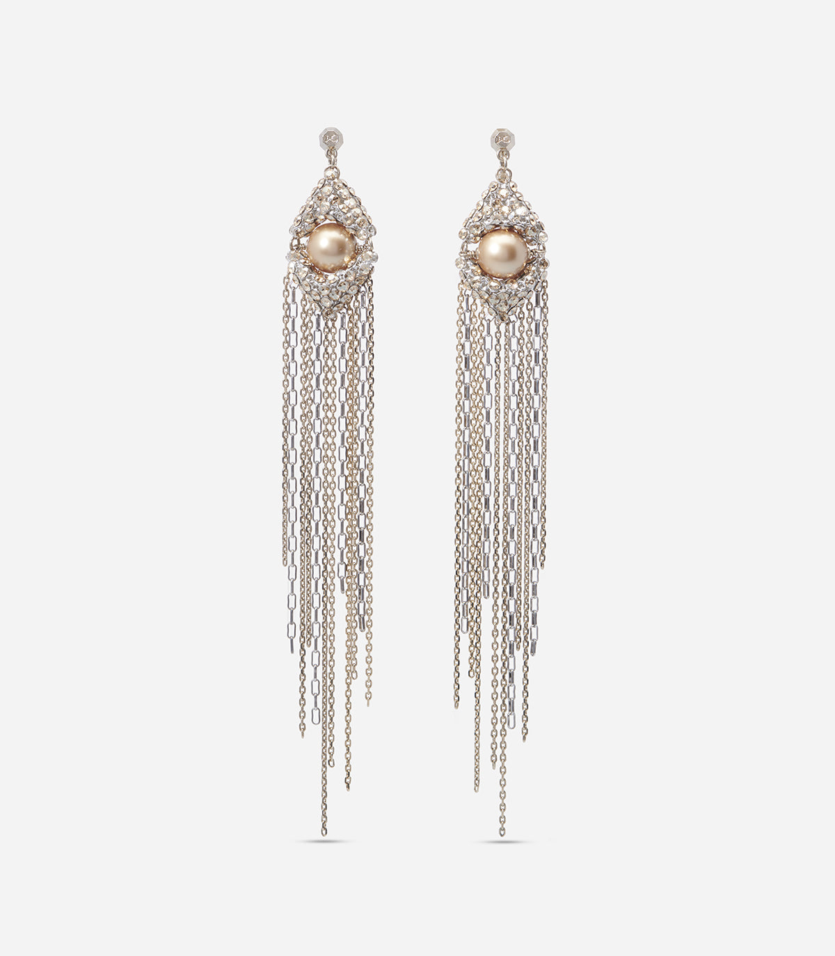Discover our Delphine-Charlotte Parmentier dangling earrings, precious creations available in different lengths to elegantly dress your neck. Perfect for evening wear, they are adorned with chains and pearls, or links and rhinestones. These characterful pieces add a remarkable, sophisticated touch to make you shine at your evening events.