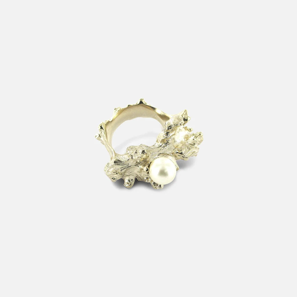 Textured ring inspired by nature, enhanced with a lacquered crystal bead.