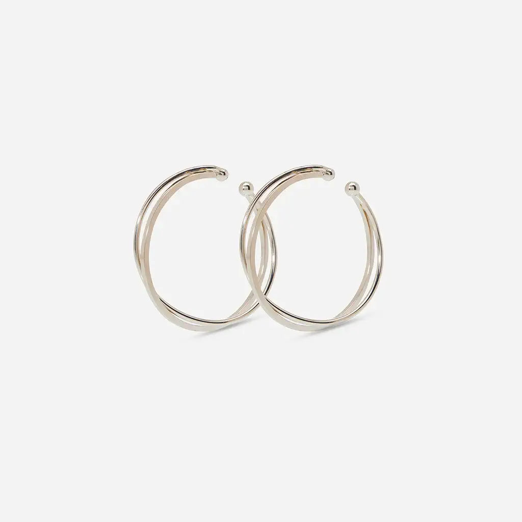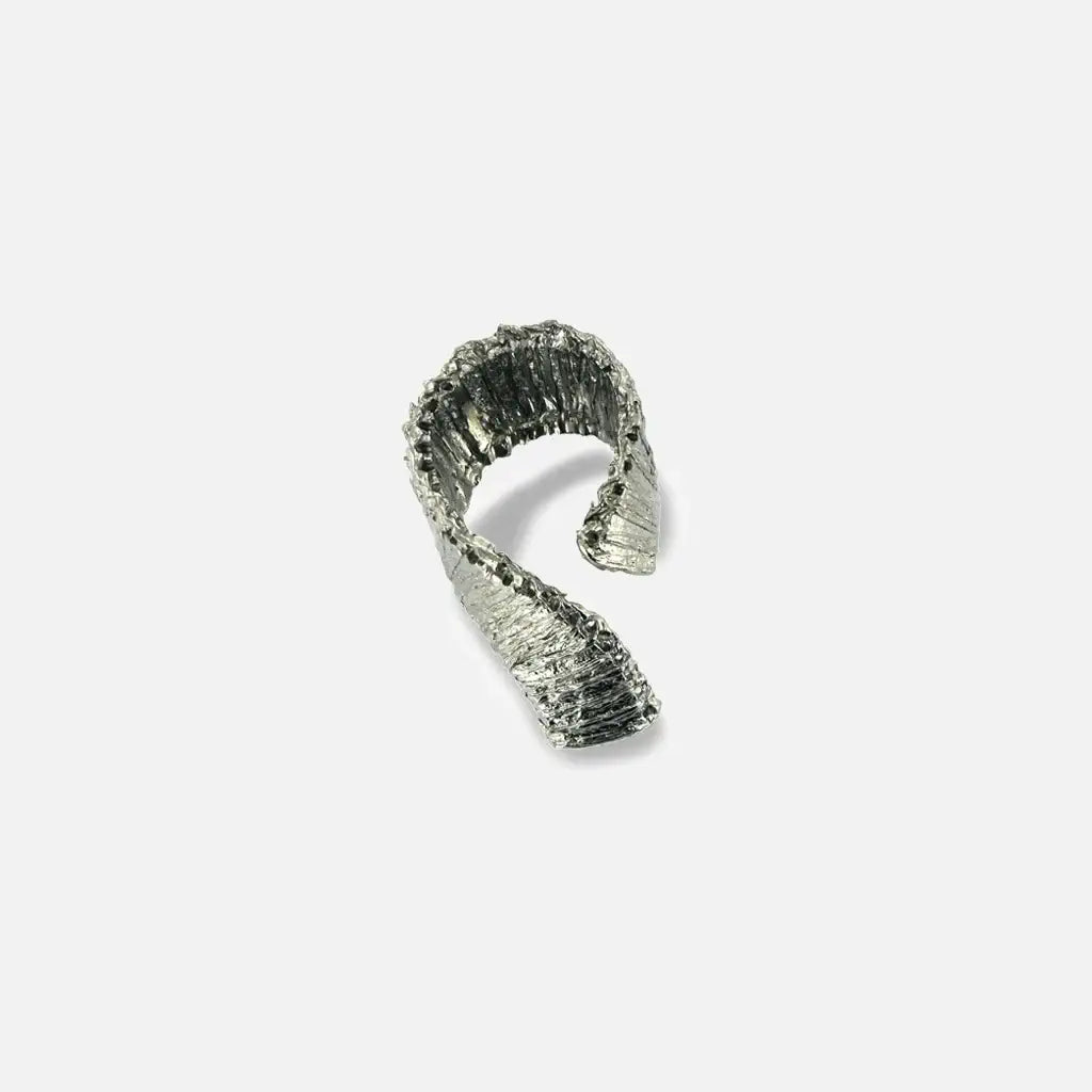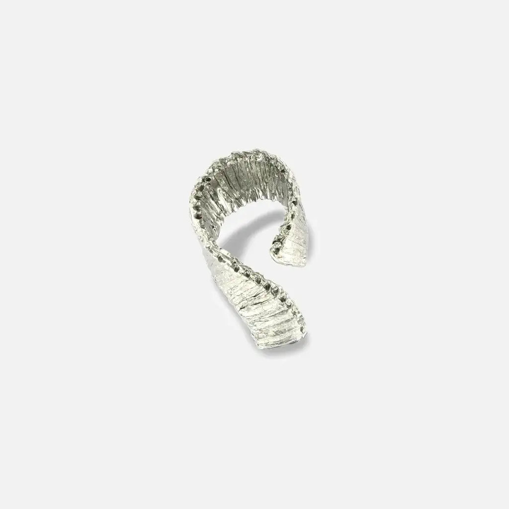 Bague d’oreille Aurore, ear cuff fin et léger en métal argenté, pour oreilles non percées, à la forme arrondie ouverte.