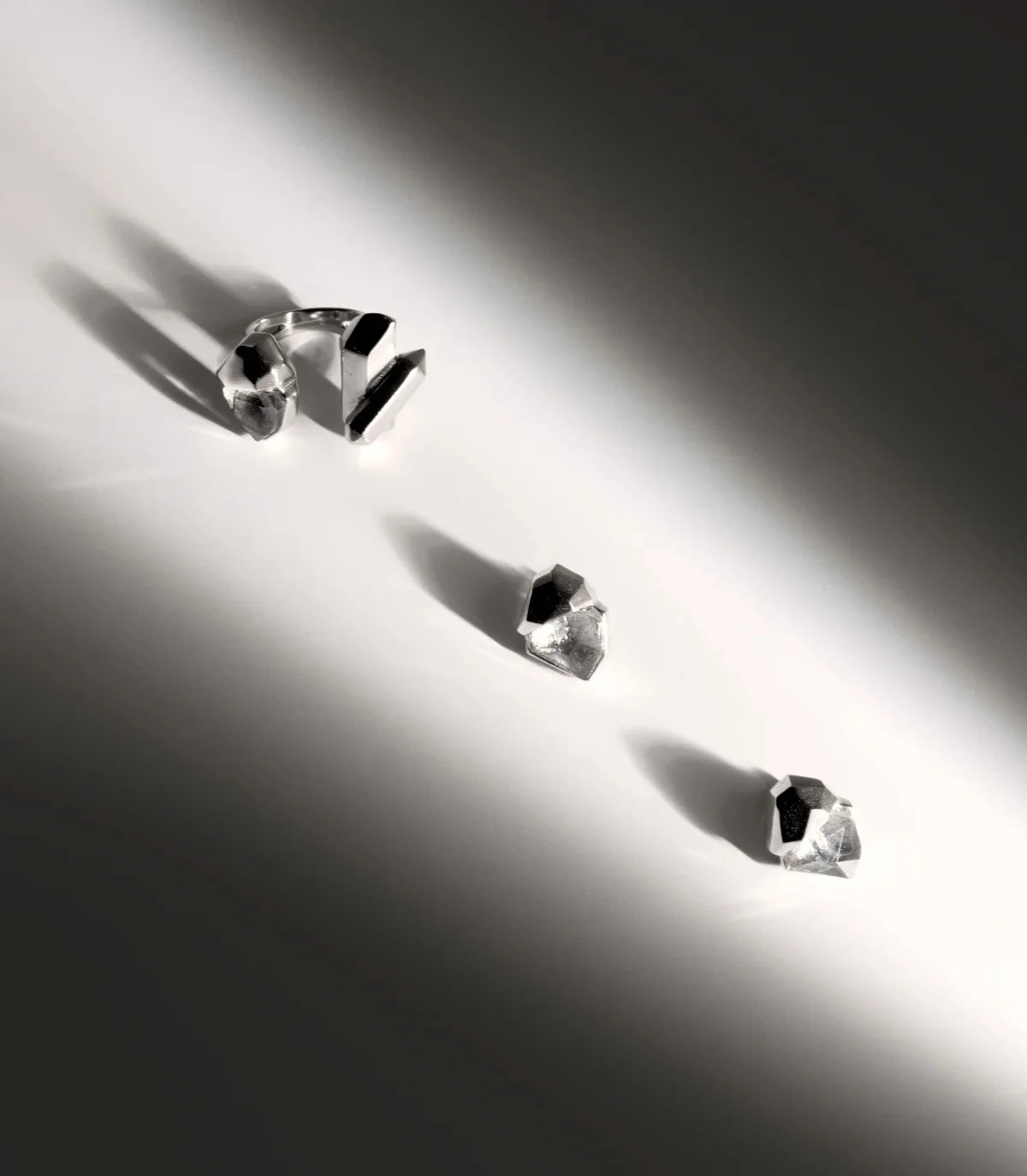 The Turbulence collection evokes these unexpected movements, these sudden forces that disrupt, fracture, and transform. It shatters matter. In a dense, mineral universe, luminous bursts inspired by crystals burst forth. The angular, incisive reflections capture the light and reveal the inner complexity of each creation.